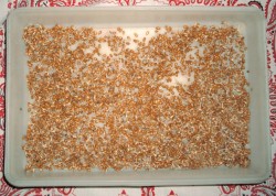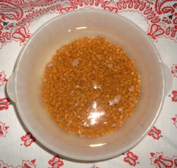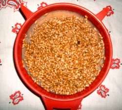 TRIGO GERMINADO: APROVECHO LAS PROPIEDADES NUTRITIVAS Y VITAMINICAS QUE DESARROLLA LA SEMILLA EN ESTE PROCESO, DE LA SIGUIENTE MANERA: A LAS 7 DE LA MAÑANA LAVO MUY BIEN LOS GRANOS EN CONCHA Y LOS AHOGO EN UN RECIPIENTE POR 24 HORAS AÑADIENDO 5 GOTAS DE VINAGRE DE MANZANA, AL DIA SIGUIENTE ENJUAGO VARIAS VECES ENERGICAMENTE HASTA QUE EL AGUA SALGA LIMPIA Y SE PIERDA EL OLOR A FERMENTACION ADQUIRIDO DURANTE EL REMOJO, LUEGO PONGO A ESCURRIR EN UN COLADOR POR 24 HORAS SOBRE UN CUBO CON APROXIMADAMENTE 2/3 DE AGUA PARA QUE EL VAPOR MANTENGA HUMEDA LA SEMILLA, FINALMENTE, AL DIA SIGUIENTE ENJUAGO UNA VEZ MAS Y LO ESCURRO AL MAXIMO PARA EXTENDER LA SEMILLA EN UNA BANDEJA PLANA QUE TAPO POR 24 HORAS PARA SU PROCESO DE GERMINACION... Y LISTO PARA SERVIR.